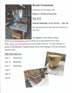 Woodworking Classes at Brunk Farmstead with Mark Hinds